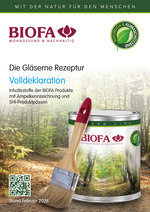 Die BIOFA Holzlasur ist in den Farbtönen des BIOFA FILUC-Farbtonfächer abtönbar.
