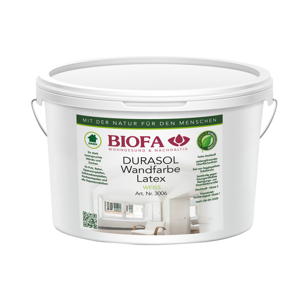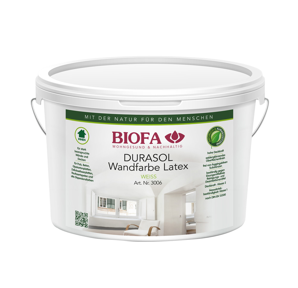 DURASOL Wandfarbe Latex seidenglänzend, weiß, lösemittelfrei, 3006